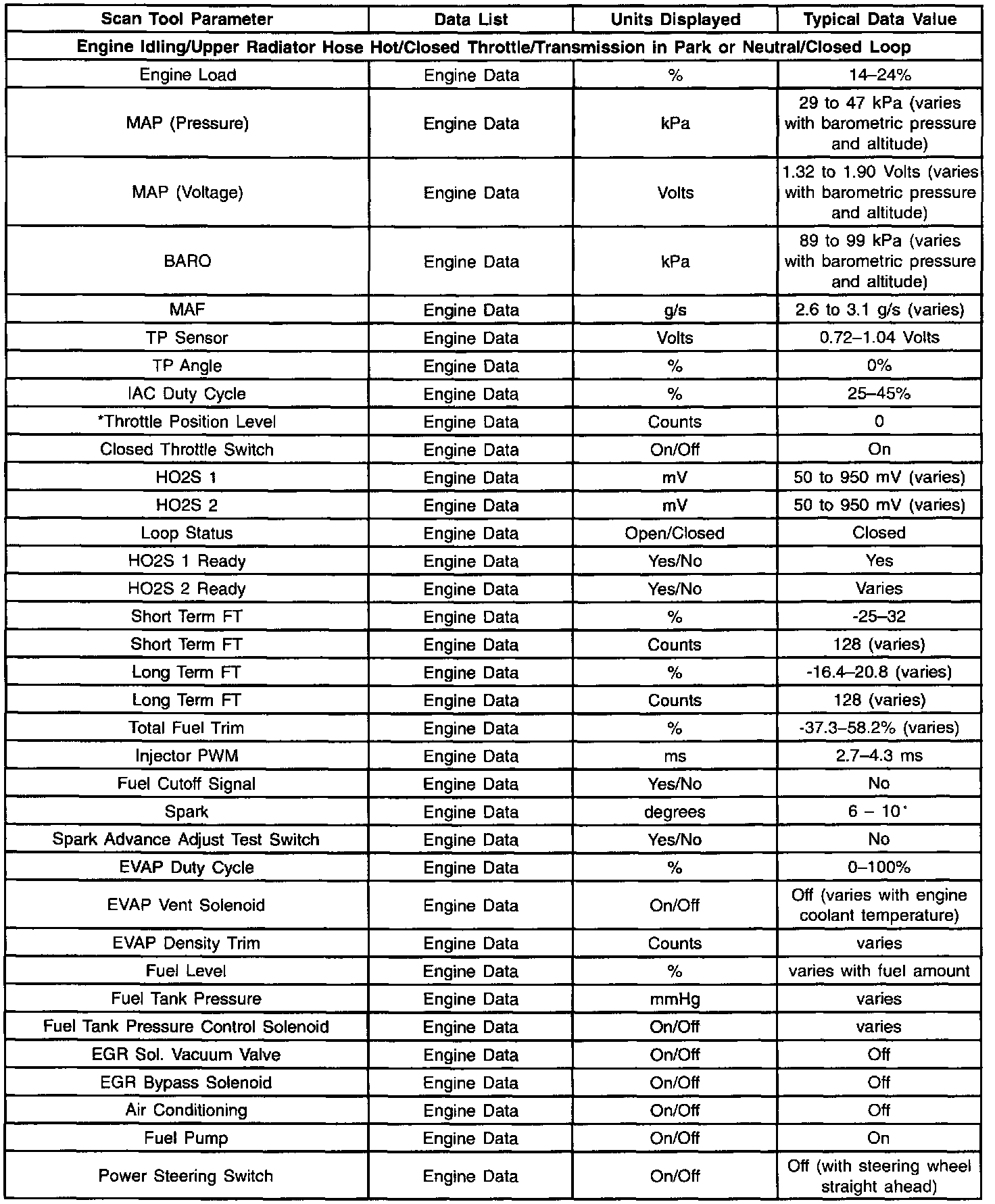 Scan Tool Data List