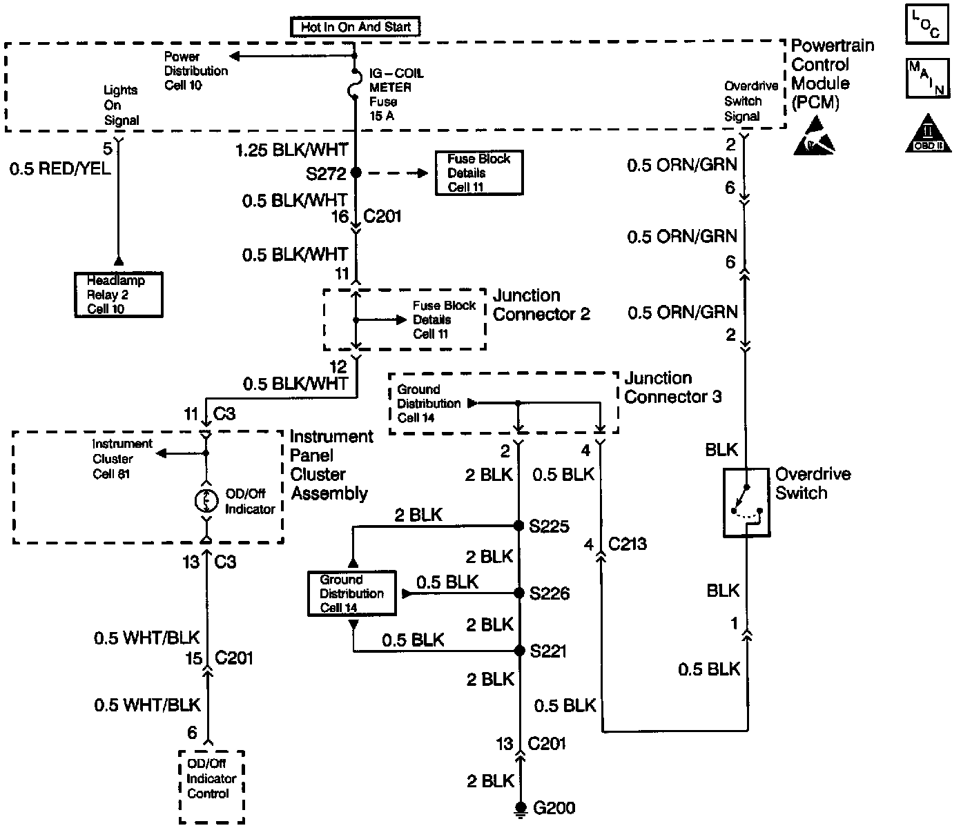 ^ A short to ground in the OD/OFF indicator control