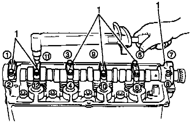and the camshaft carrier caps (1) onto the cylinder head.
