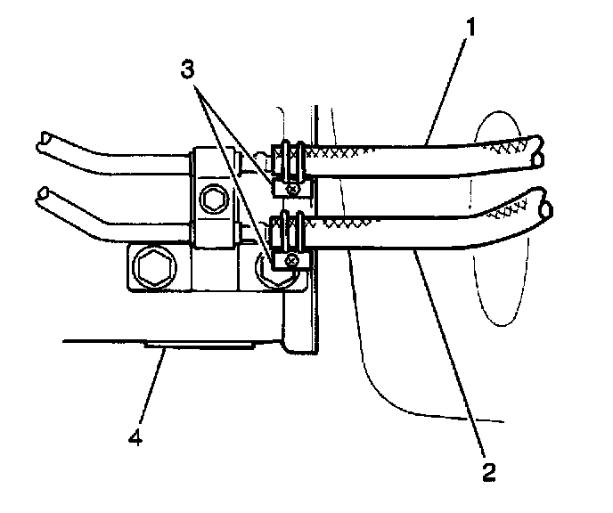 5. Secure the transmission cooler hoses with the 2 inlet and outlet hose clamps (3).