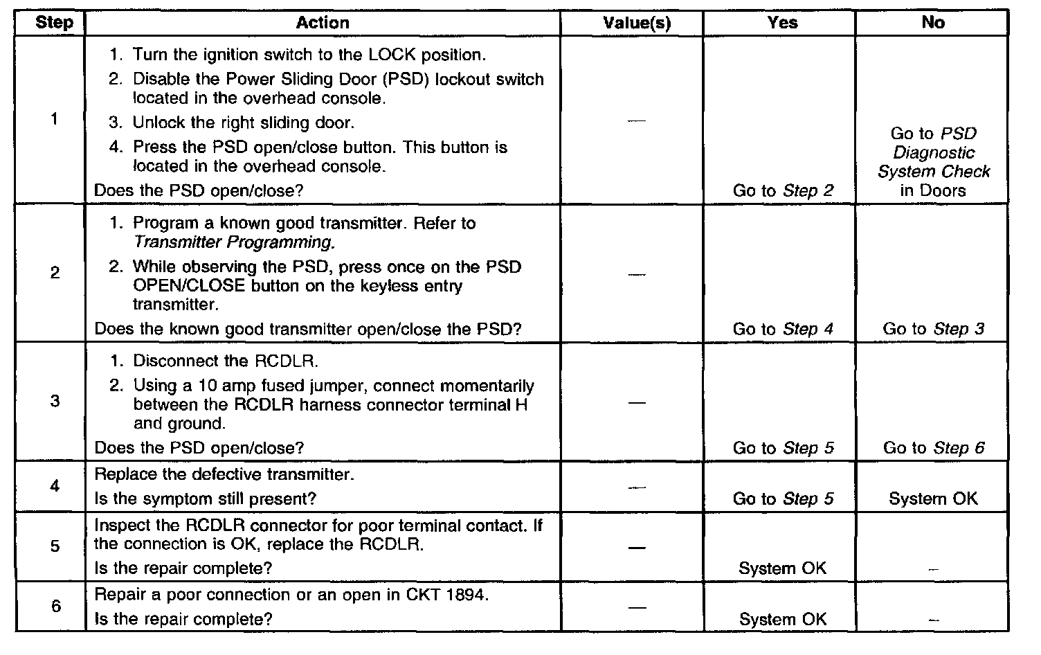 PSD Open/Close Inoperative With Transmitter: