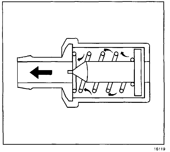 4. Turn OFF the engine. Remove the crankcase ventilation valve. Shake the valve. Listen for the rattle of the check needle inside of the valve. It valve does not rattle, replace the valve.