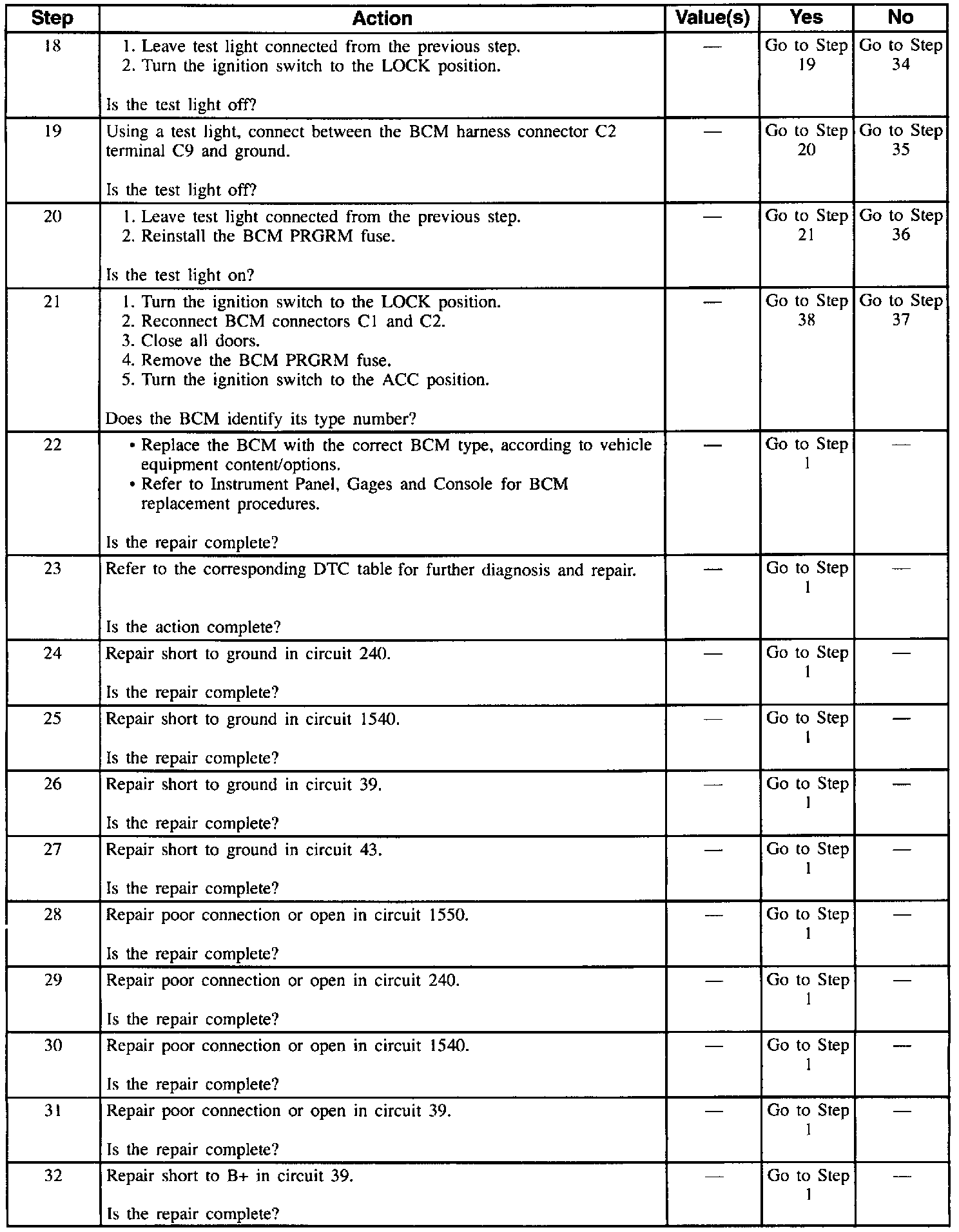 18. Checks for a short to B+ in circuit 43.