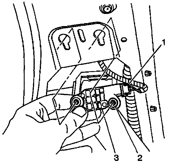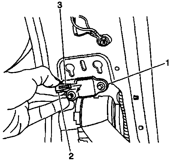 7. Remove the inflatable restraint side impact sensor (3) from the B-pillar.