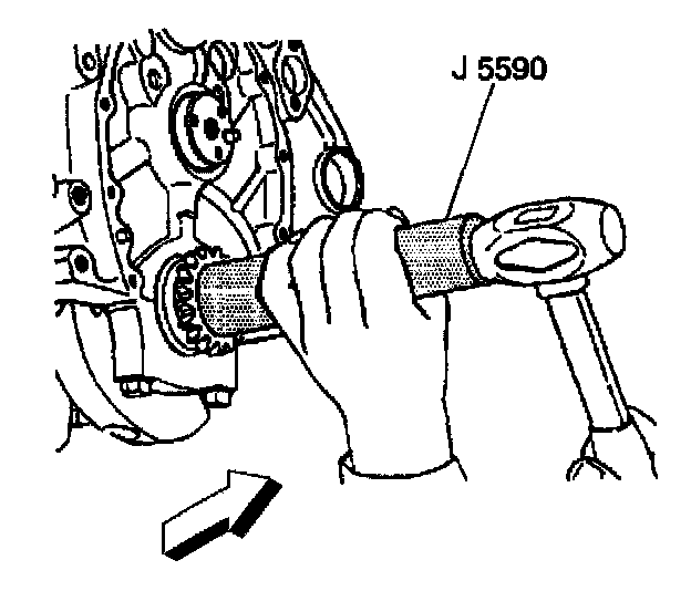Use the J 5590 and a hammer in order to install the crankshaft sprocket.
