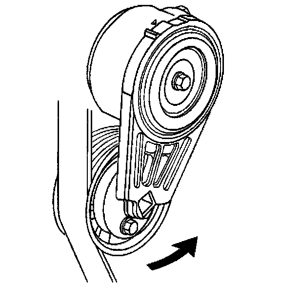 4. Install a 3/8 inch drive wrench on the drive belt tensioner arm and rotate the arm counterclockwise.