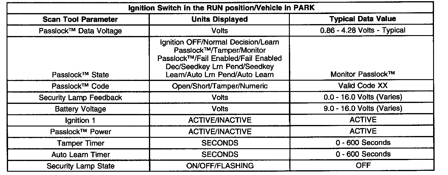 Scan Tool Data List - Antitheft System
