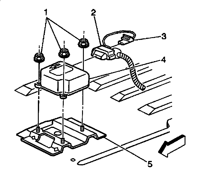 2. Install the Inflatable Restraint Sensing and Diagnostic Module (SDM) mounting fasteners (1).