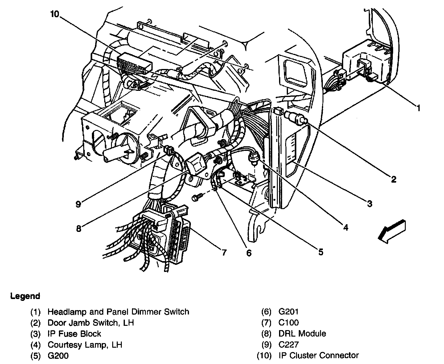 Instrument Panel Wiring, Left Side, Rear View: