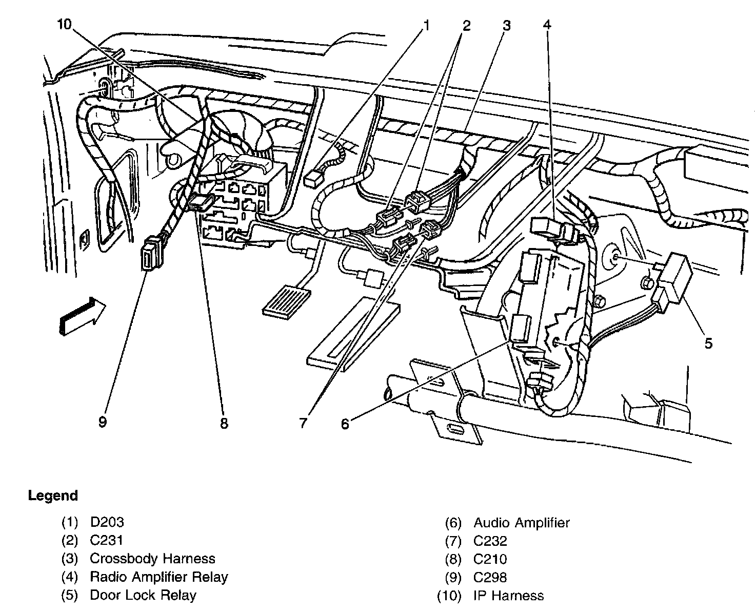 Connectors: C210, C231 C232, C298 and Diode D203 (Crossbody Harness):