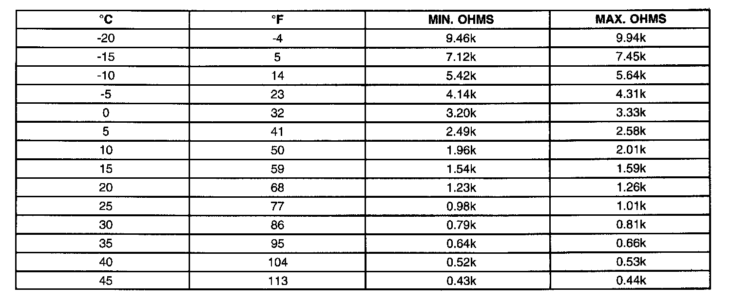 Outside Air Temperature Sensor, Temperature And Resistance Table: