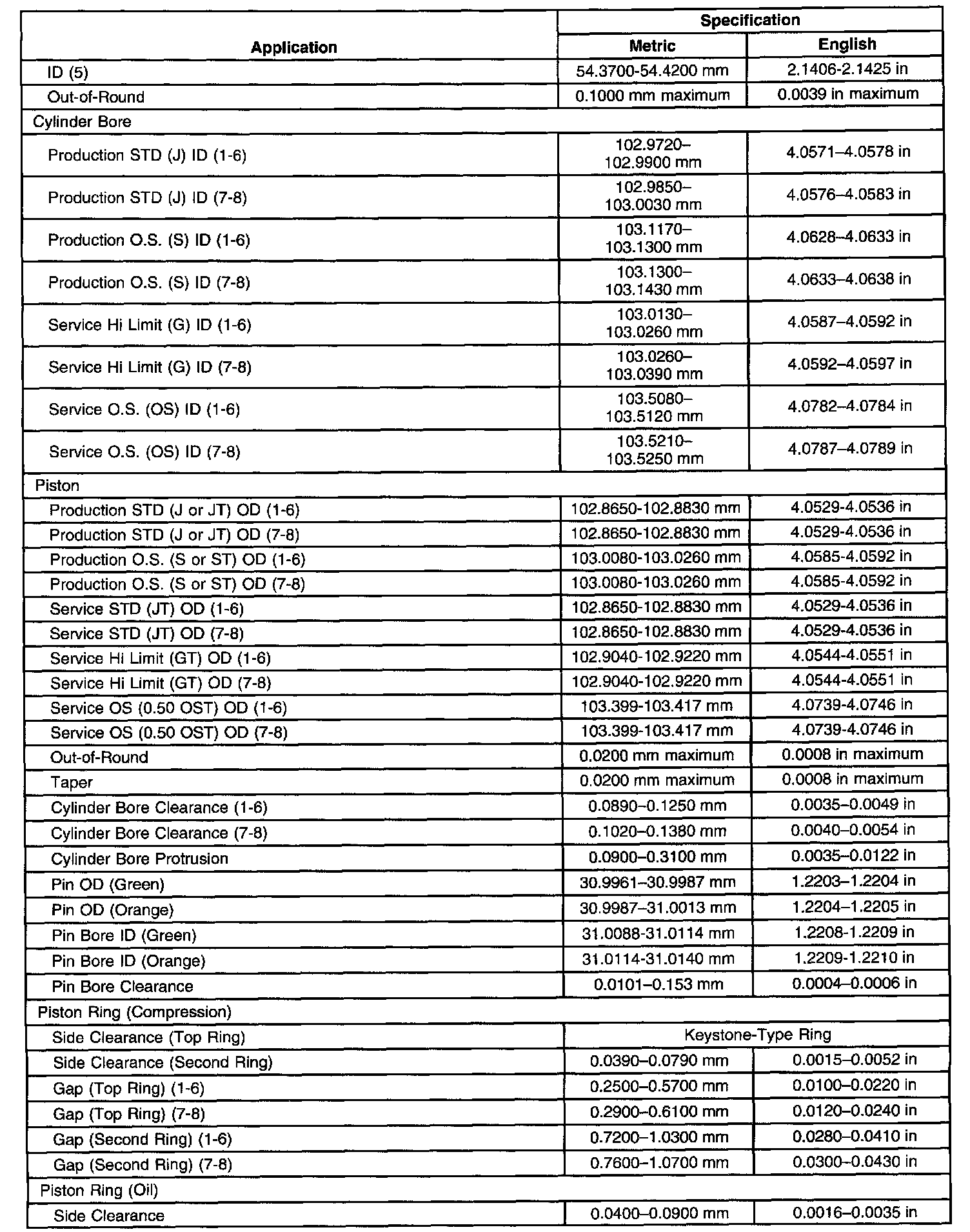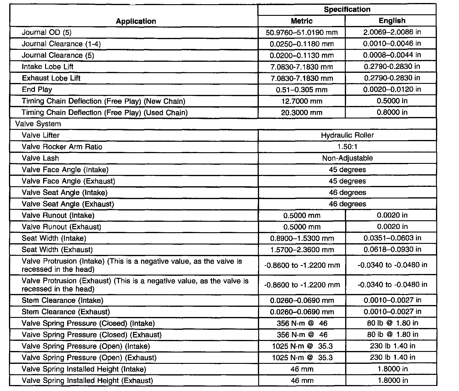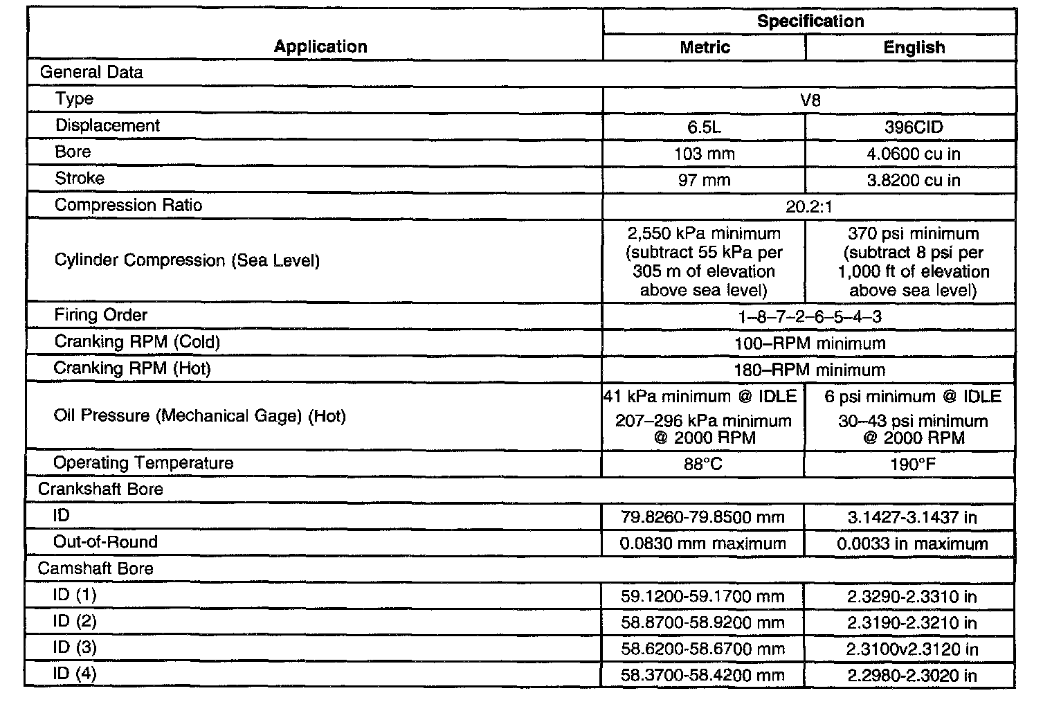 Engine Mechanical Specifications