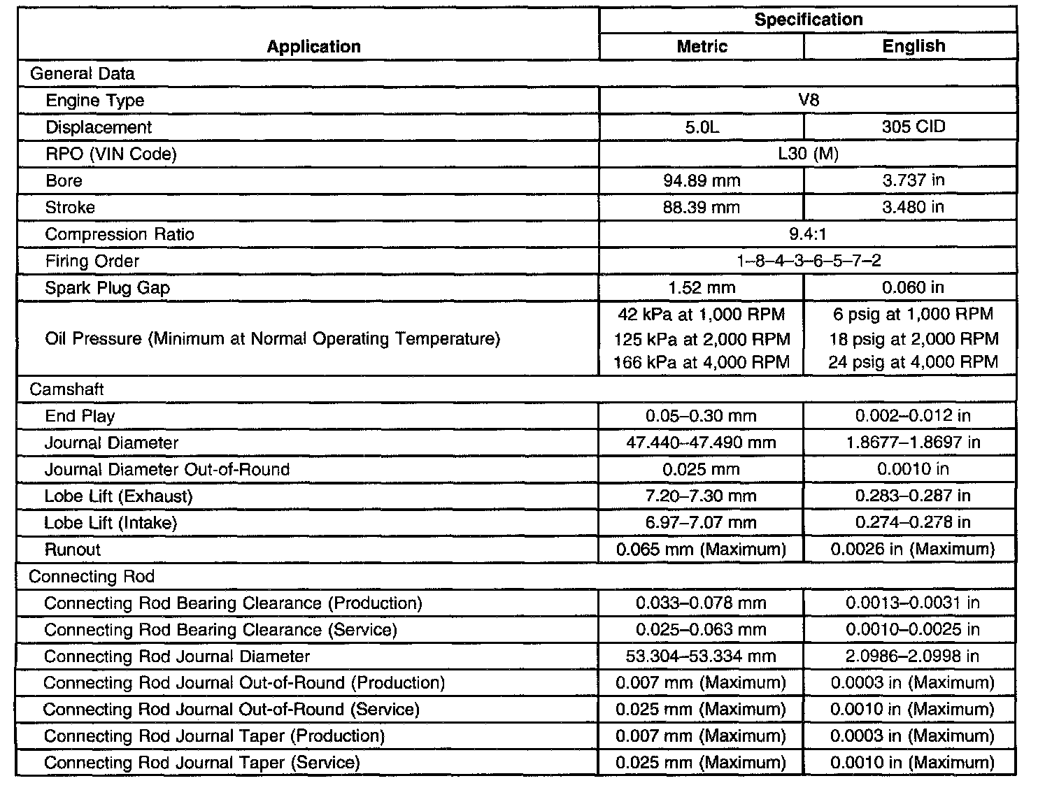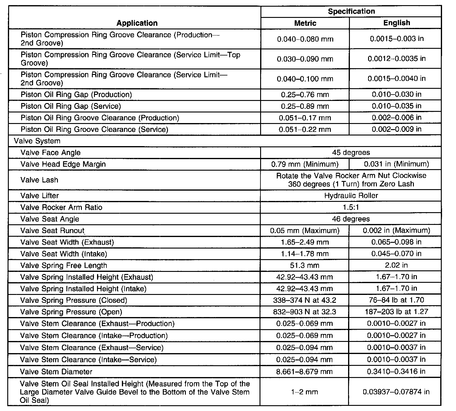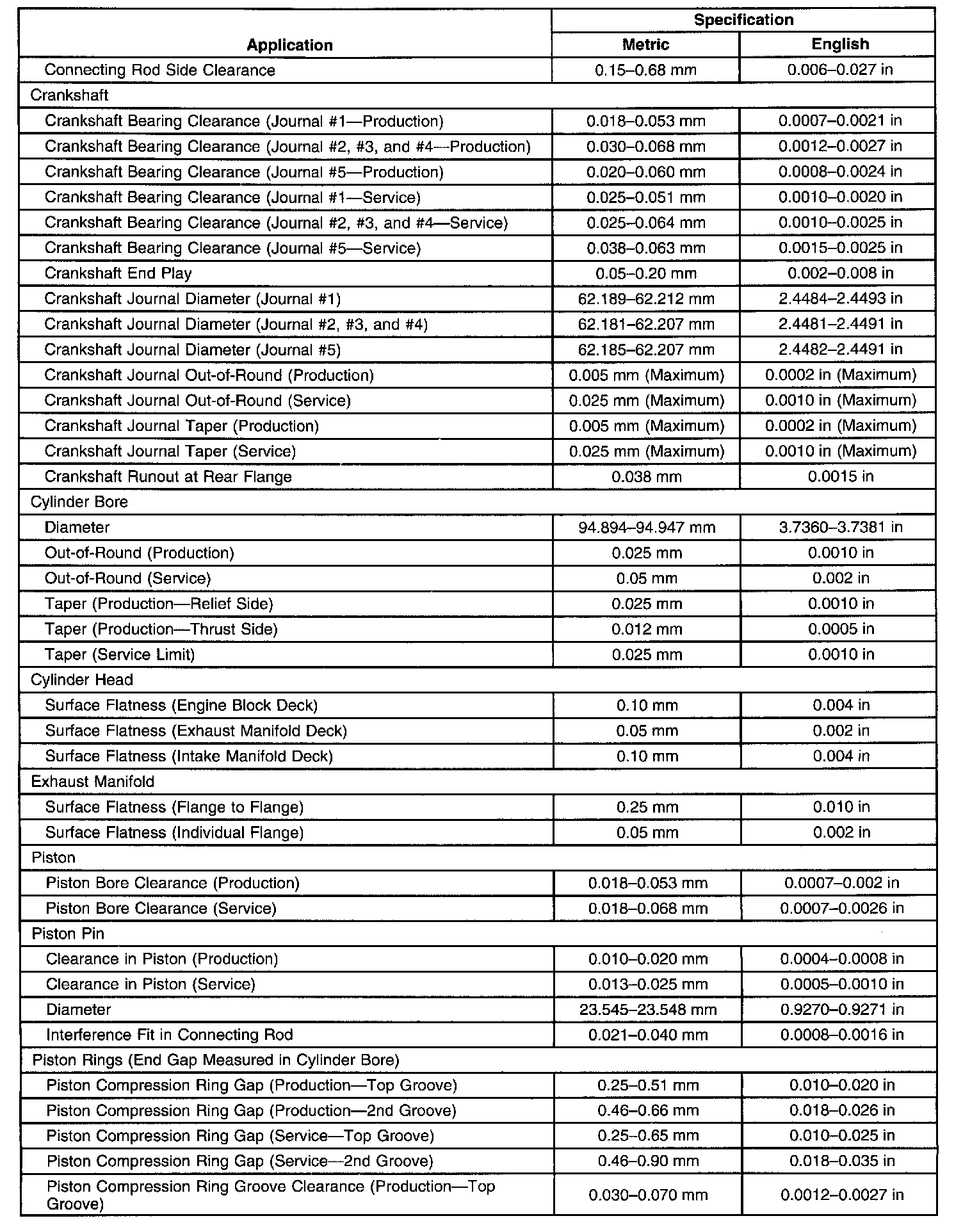 Engine Mechanical Specifications