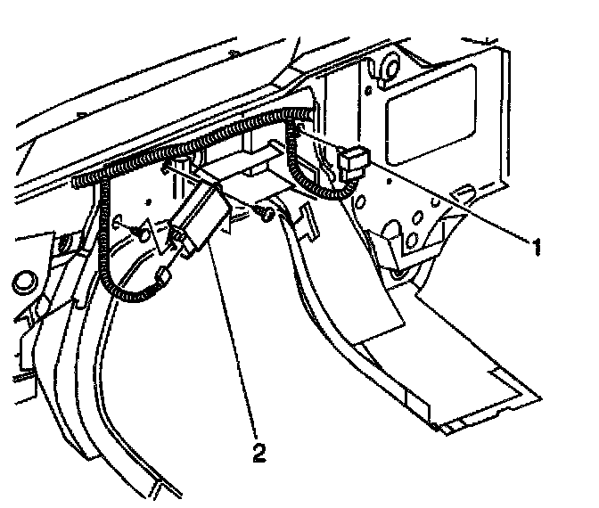 2. Install the plastic fasteners that retain the remote control door lock receiver (2) to the sound insulation.
