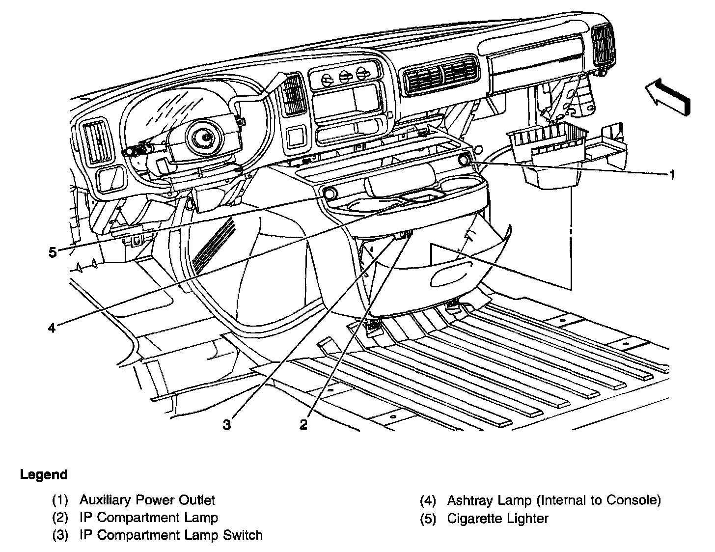 IP Compartment Lamp Switch, IP Compartment Lamp, Cigarette Lighter, Auxiliary Power Outlet, Ashtray Lamp:
