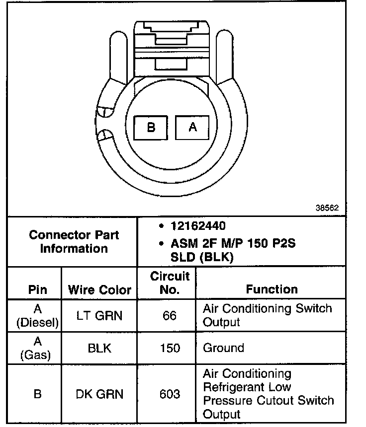 A/C Compressor Low Pressure Cutout Switch Connector: