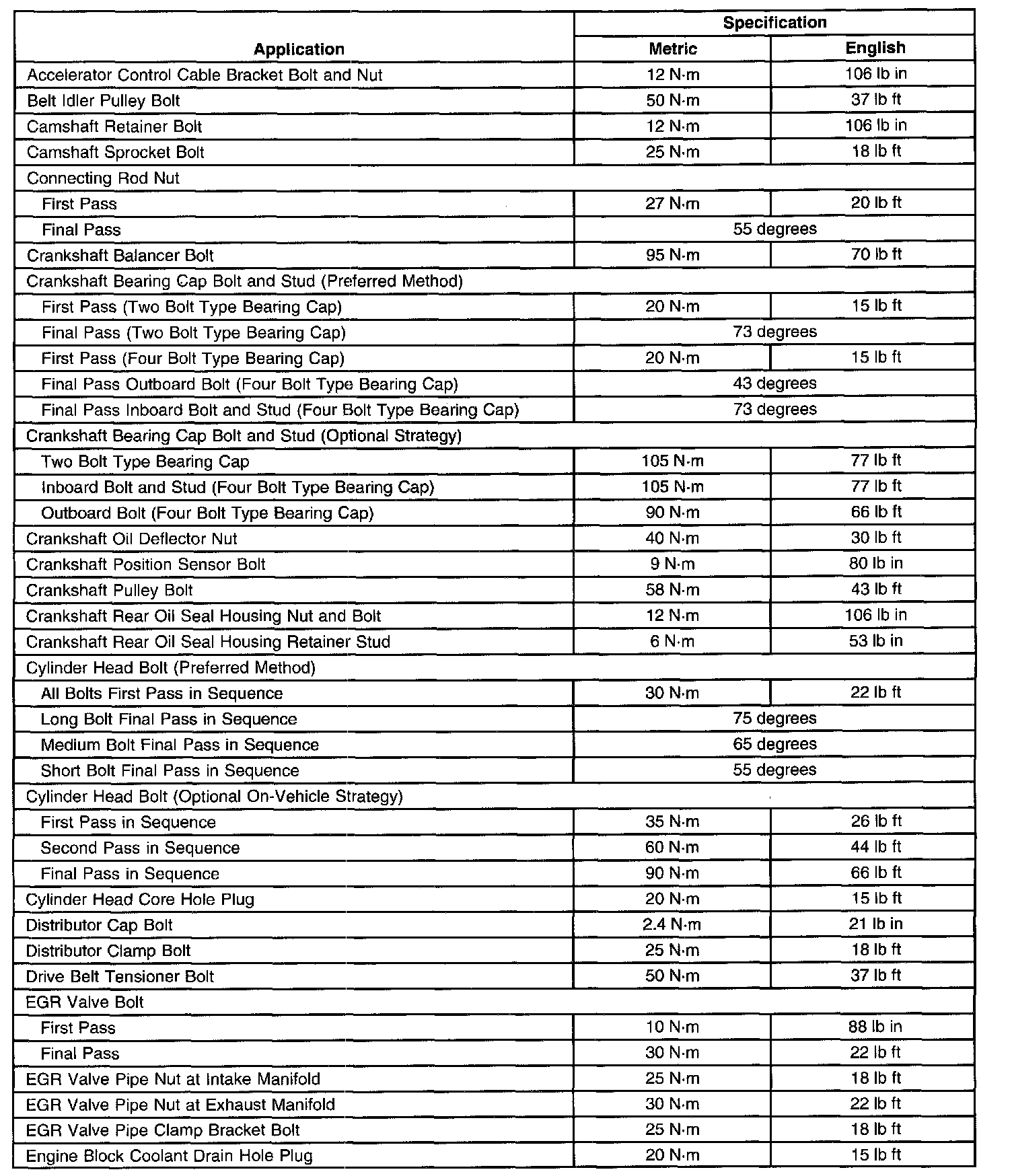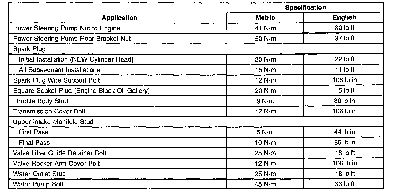 Fastener Tightening Specifications