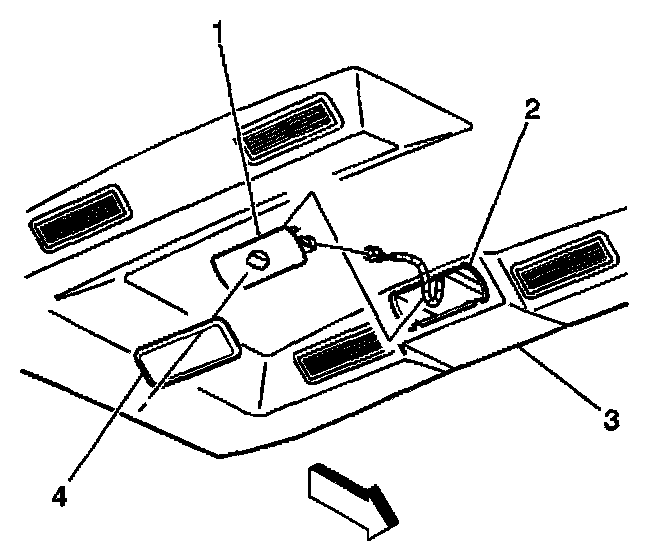 1. Remove the rear control switch bezel (4) from the headliner.