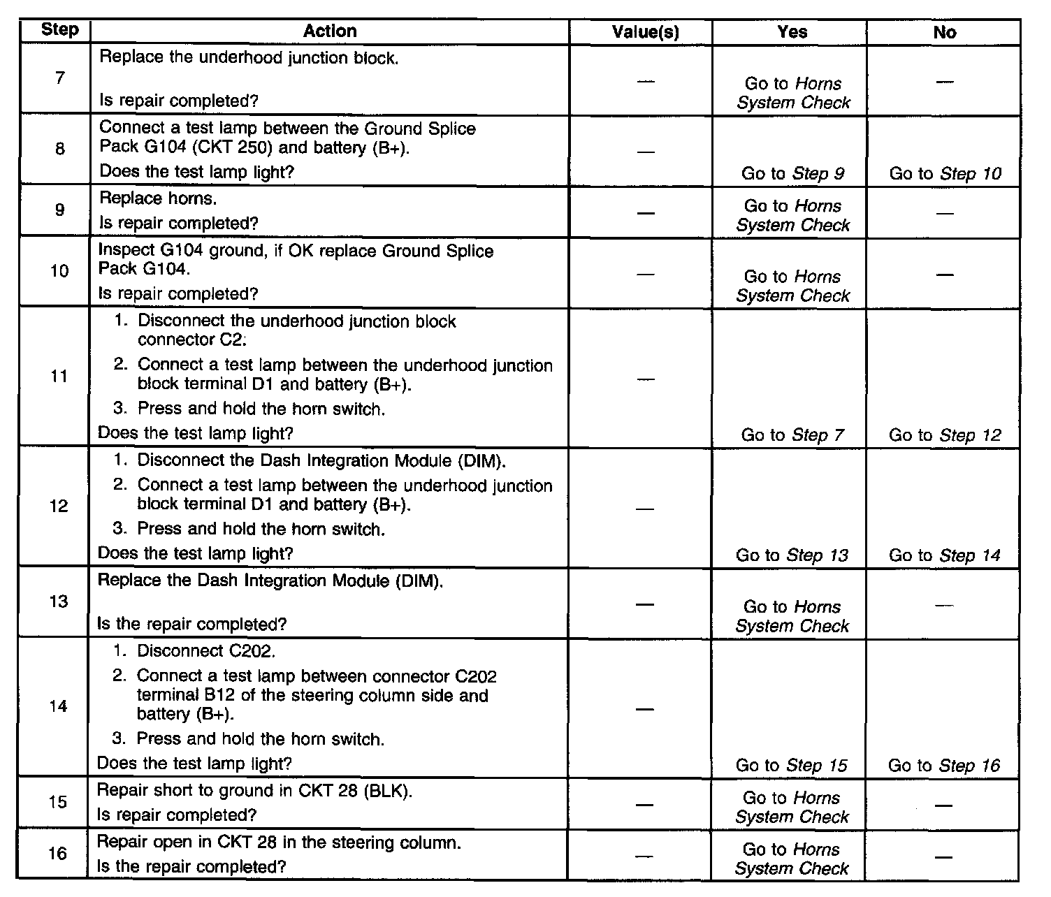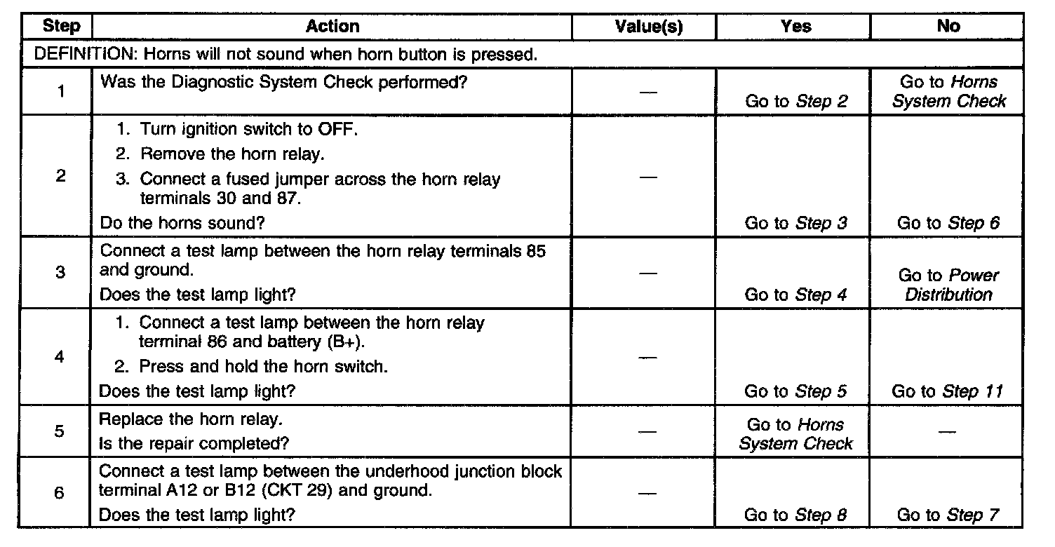 Diagnostic tables provide a procedure that will help you locate the condition in a circuit that is causing a malfunction. All diagnostic procedures are symptom based, to assist you in locating the condition as fast as possible. Diagnostic tables should exist for all possible (realistic) symptoms and Diagnostic Trouble Codes (DTCs).