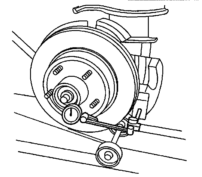 4. Measure the endplay in the hub/rotor assembly. Proper endplay is 0.03 - 0.20 mm (0.001 - 0.008 inches).
