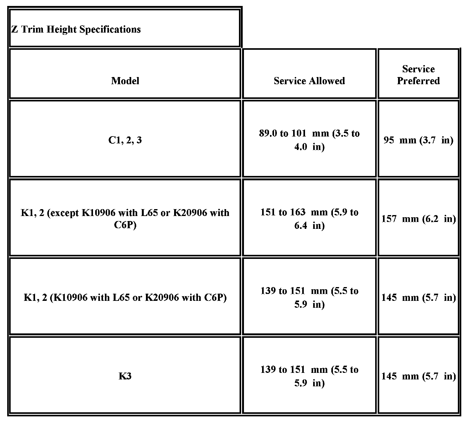 Trim Height Specifications