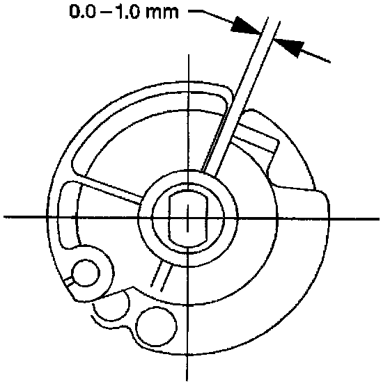 2. Adjust the length of the cruise control cable until there is a clearance of 0.0-1.0 mm (0.0-0.04 in) between the cruise control cable and the accelerator cable throttle lever cams.
