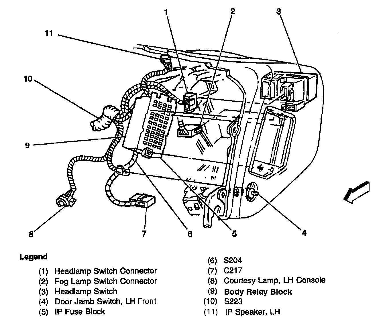 LH of the IP, near the door jamb switch, LF