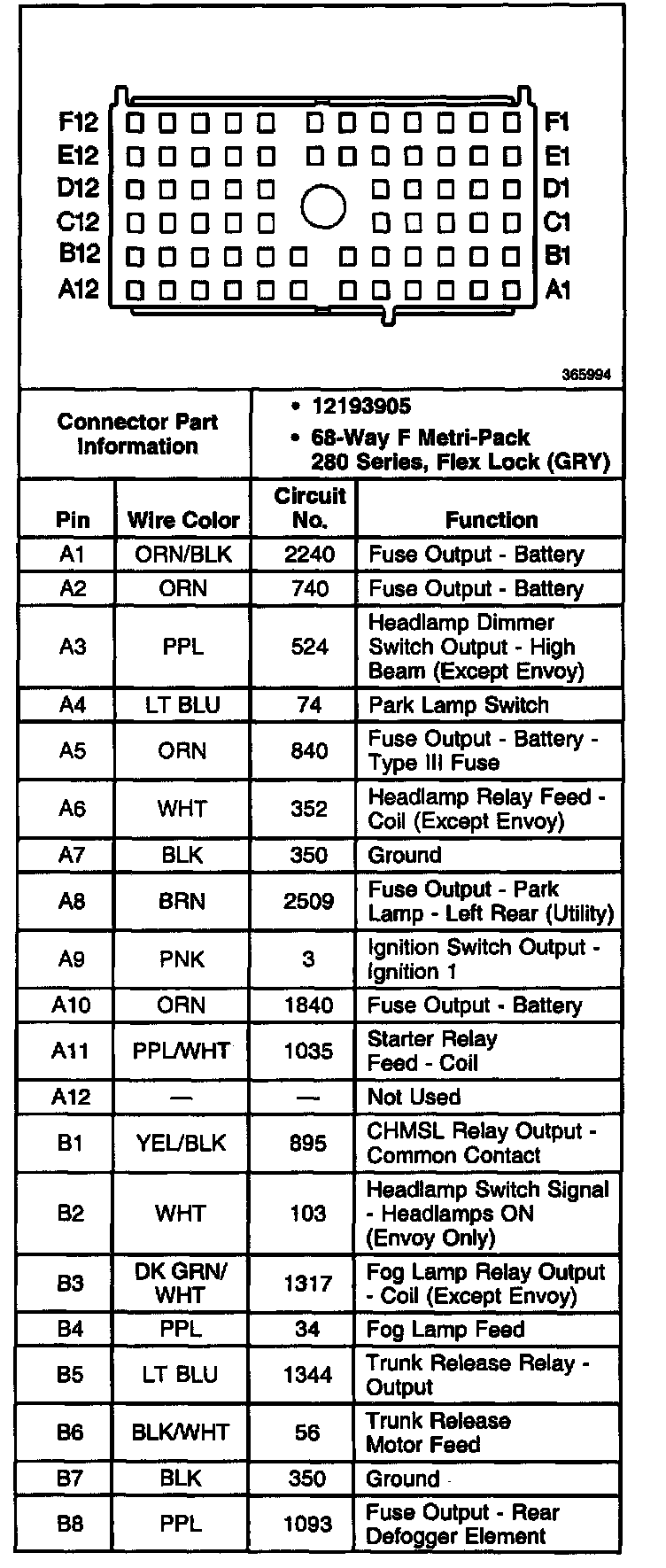 Underhood Fuse Block Connector C1 (Part 2 Of 2):