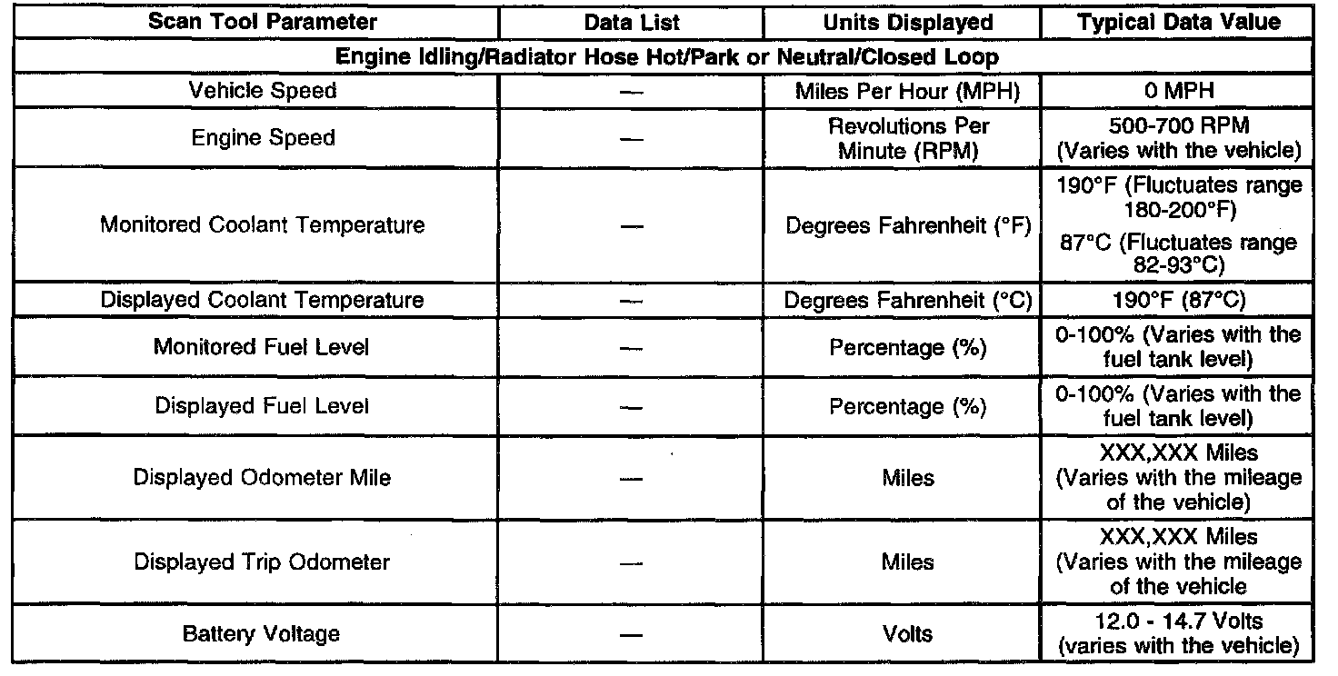 This data is the cluster's measurement of the fuel tank level. The data is provided by the VCM/PCM on the Class 2 serial data line. If a Class 2 communication failure occurs, this data will be 0.