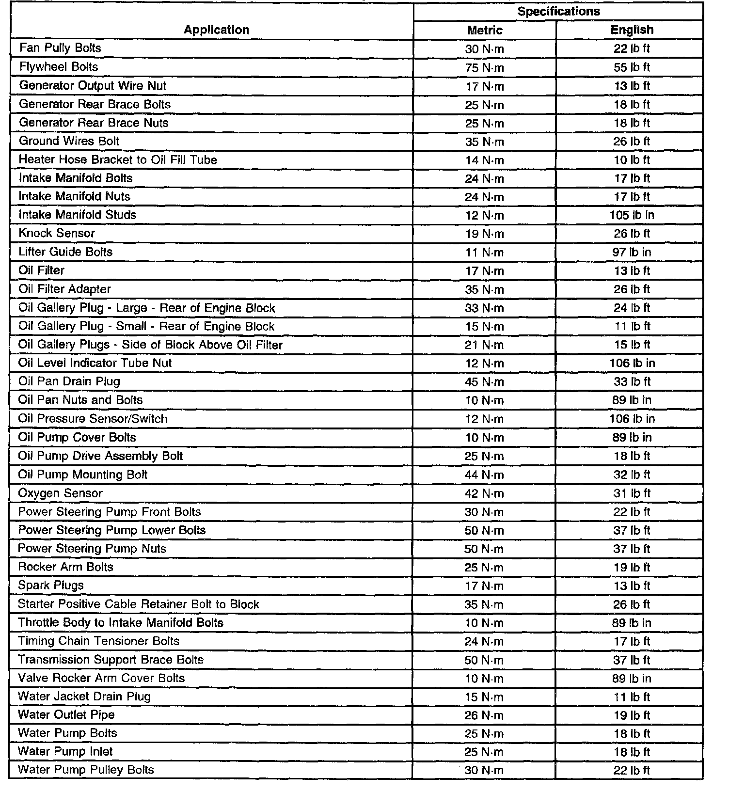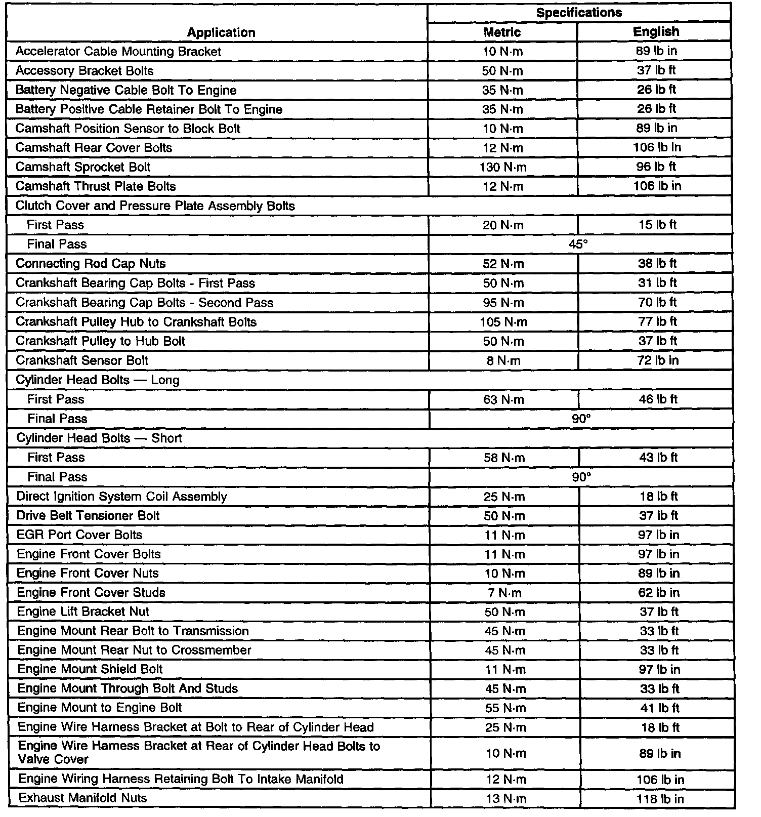 Fastener Tightening Specifications