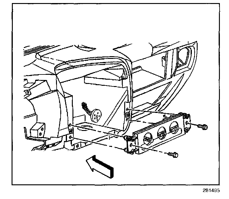 3. Depress the control assembly retaining tabs and remove the control assembly from the instrument panel.
