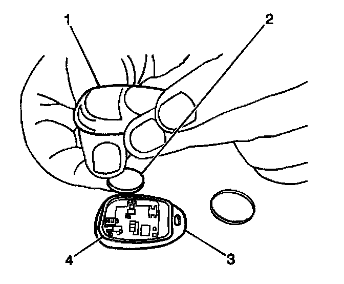 4. Verify that the remote control door lock receiver transmitter (3) is functioning correctly. If not, refer to Transmitter Programming. Service and Repair