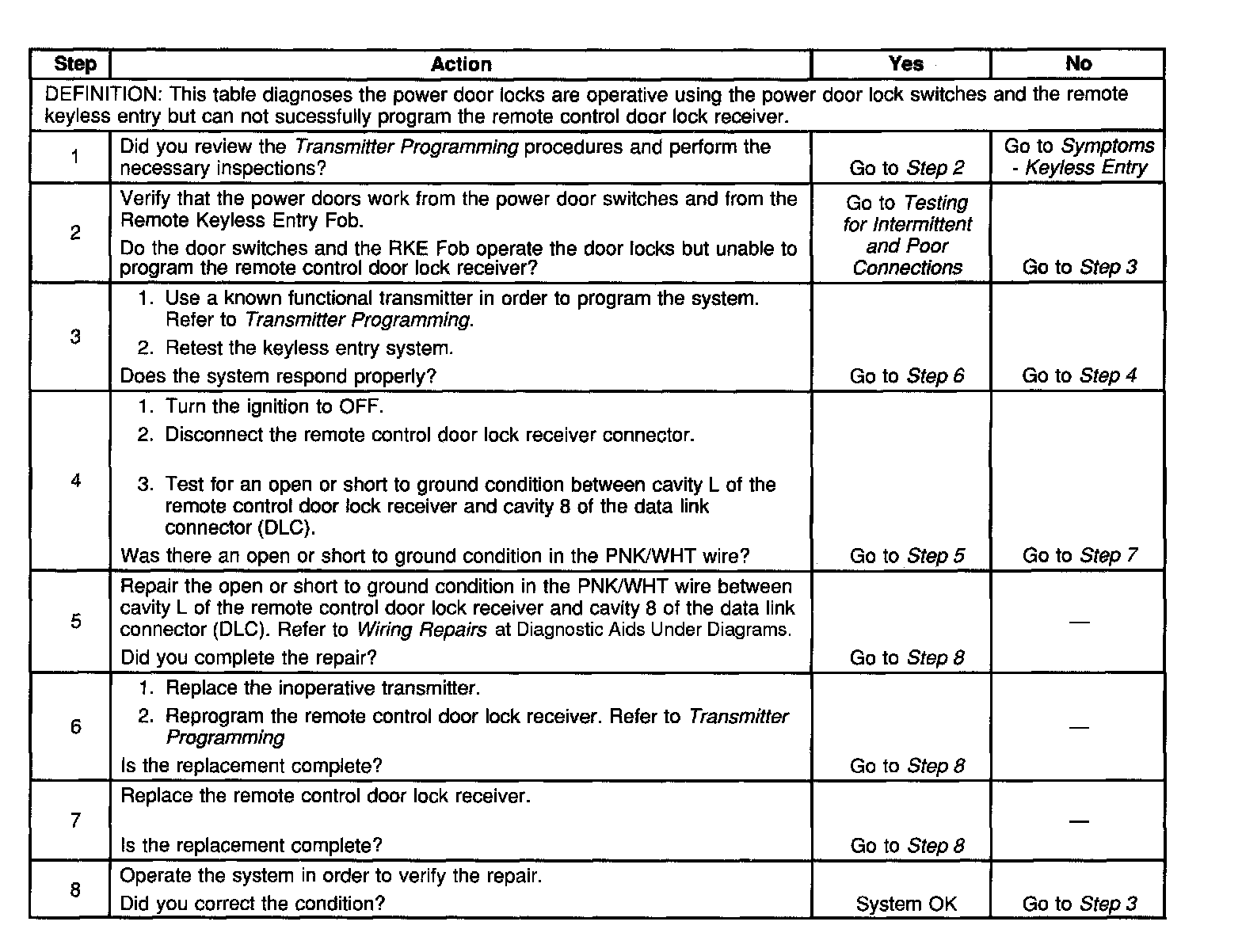 Keyless Entry Does Not Program: