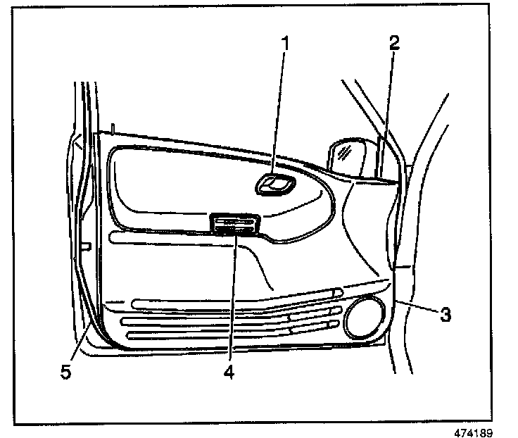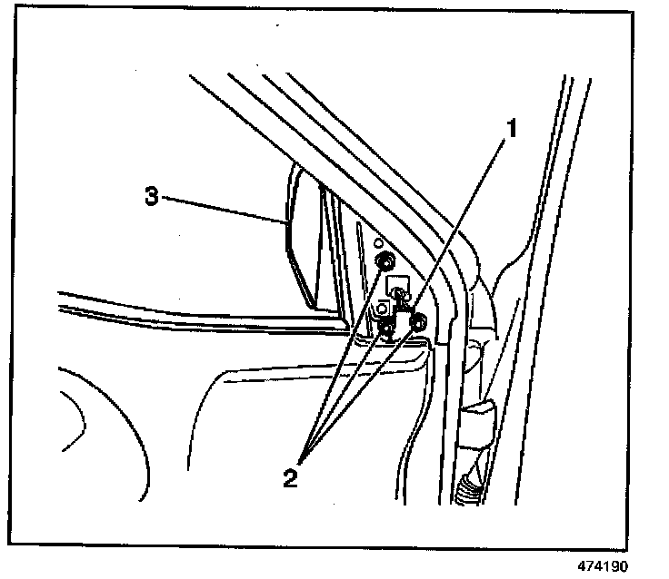 3. Remove the 3 bolts (2) and outside rearview mirror (3) from the door.