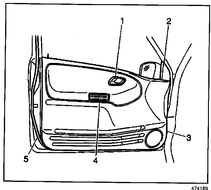 REMOVAL PROCEDURE1. Gently pry the outside rearview mirror opening cover (2) from the front side door.
