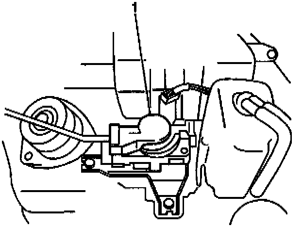 1. Install the cruise control servo assembly (6) to the vehicle. Secure the assembly with the 3 bolts (2).