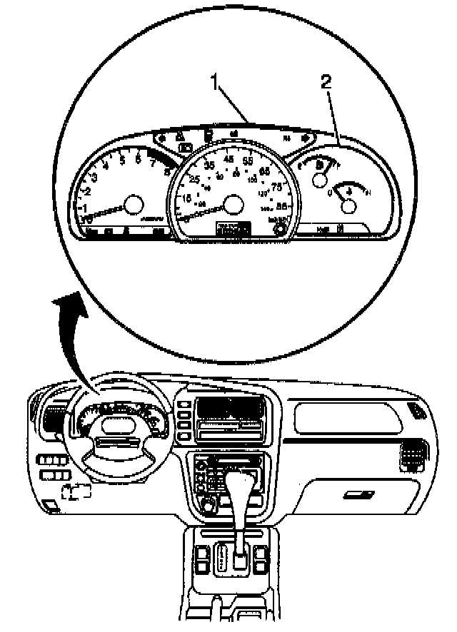 The cruise indicator is in the upper center portion of the instrument cluster (1). The cruise indicator lights in order to inform the driver that the
