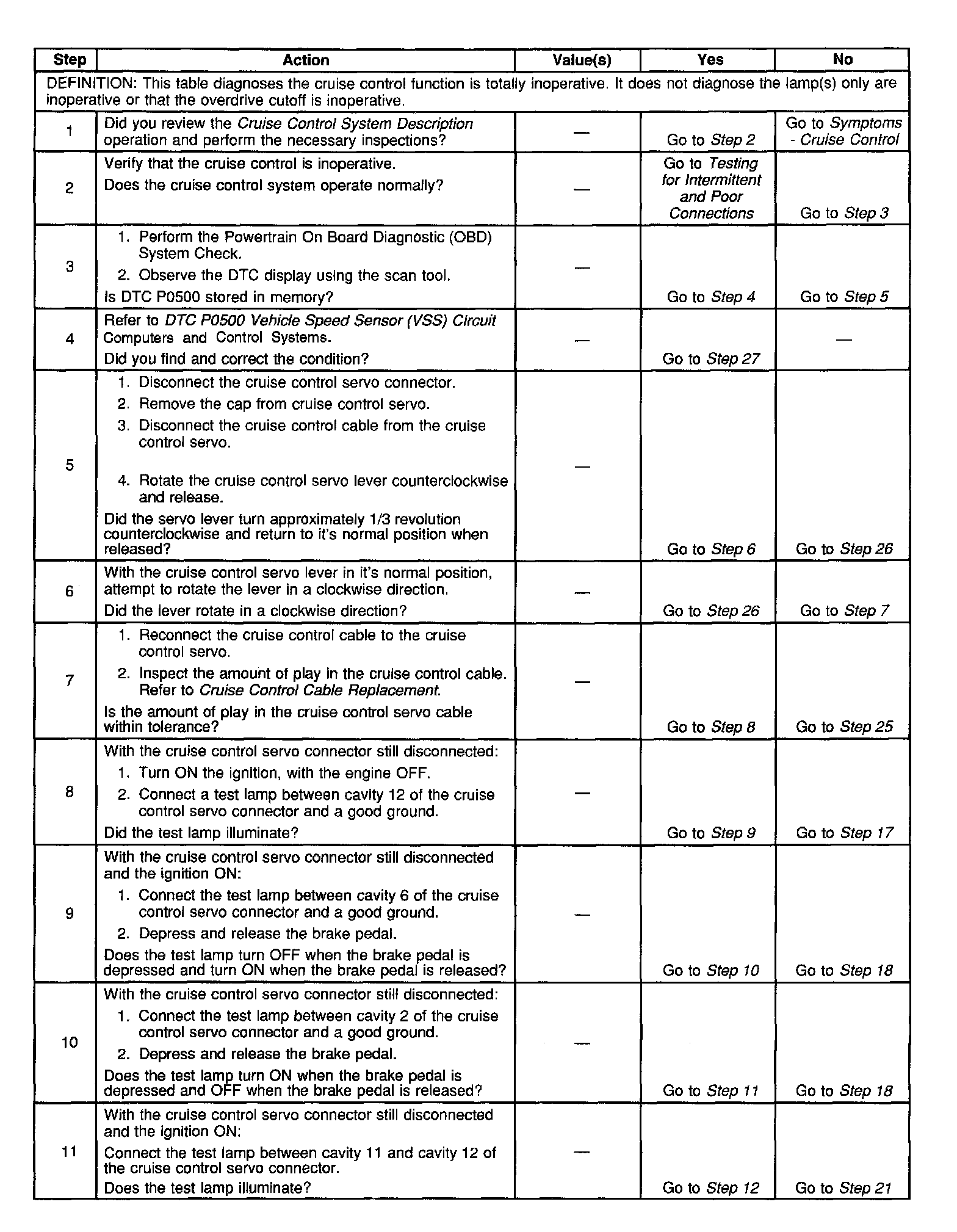 Cruise Control - Inoperative