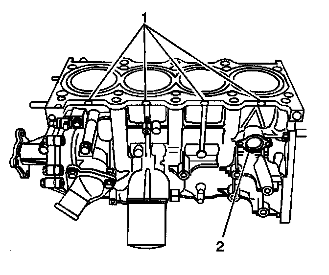 2. Insert the engine coolant heater into the hole in the engine block (2).