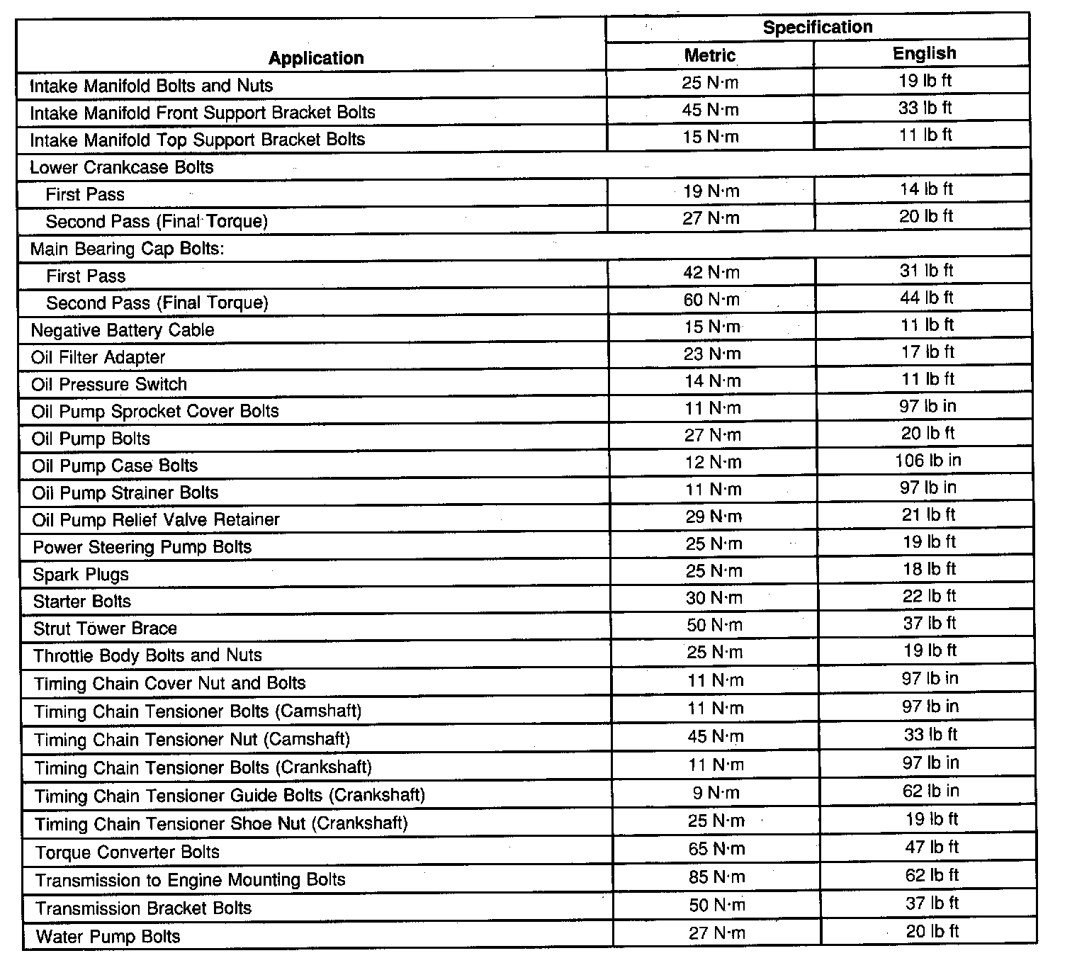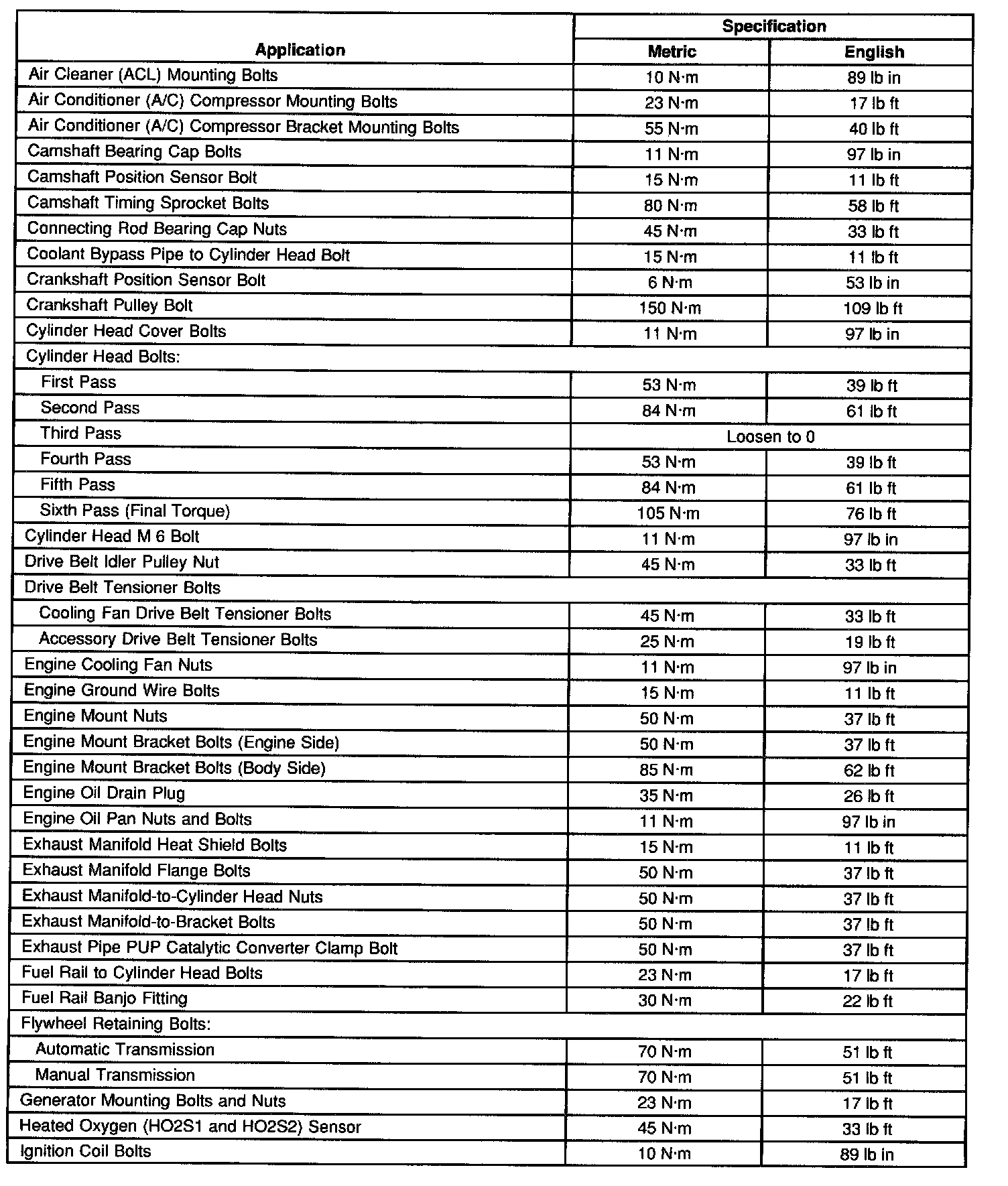 Fastener Tightening Specifications