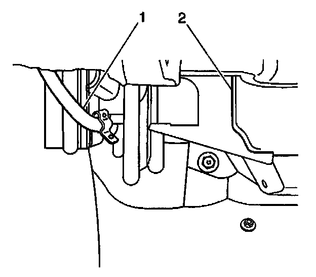 19.2. Gently pry the mode control cable (1) sheath from the heater control unit. Unhook the cable from the lever arm.