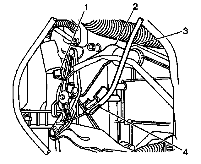 19.1. Gently pry the temperature control cable (4) sheath from the heater control unit. Unhook the cable from the lever arm.