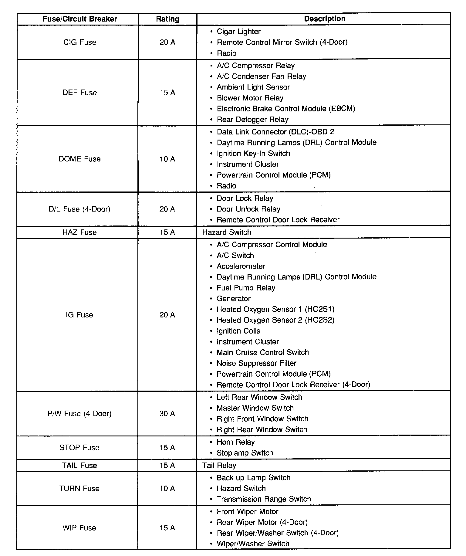 Tracker 2WD L4-2.0L VIN C