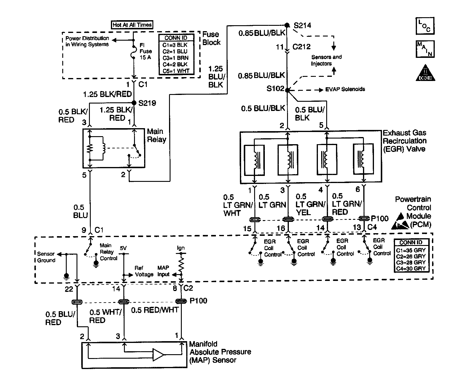 The Exhaust Gas Recirculation (EGR) system controls the formation of oxides of nitrogen (NOx) emissions by recirculating the exhaust gases into the combustion chamber. The EGR valve is a stepper motor design. The stepper motor moves a spring loaded plunger that controls the flow of exhaust gases into the intake manifold. The plunger movement is controlled by the Powertrain Control Module (PCM). By turning the stepper motor in different directions, the PCM controls the opening of the exhaust gas passage to the intake manifold. The stepper motor has four coil windings that control the motor movement.