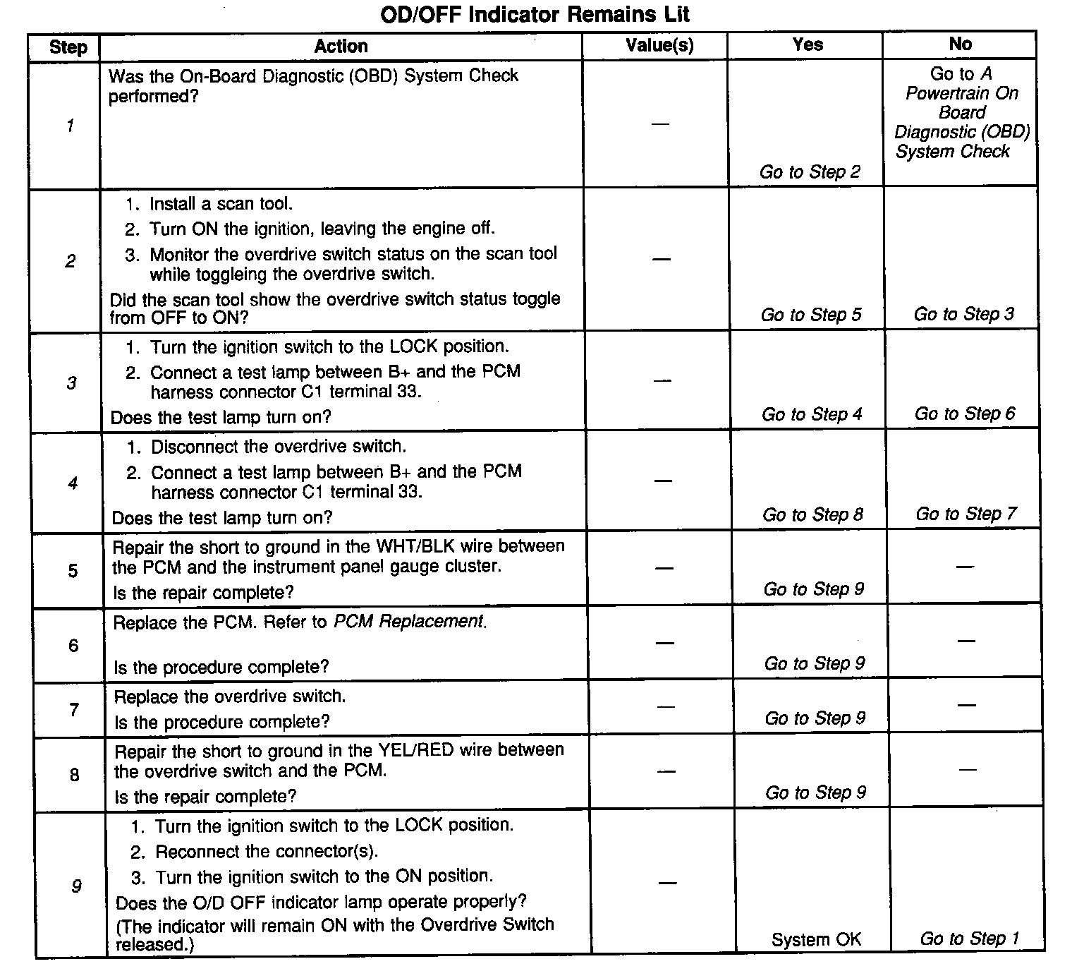 ^ A short to ground in the OD switch signal between the OD switch and the PCM
