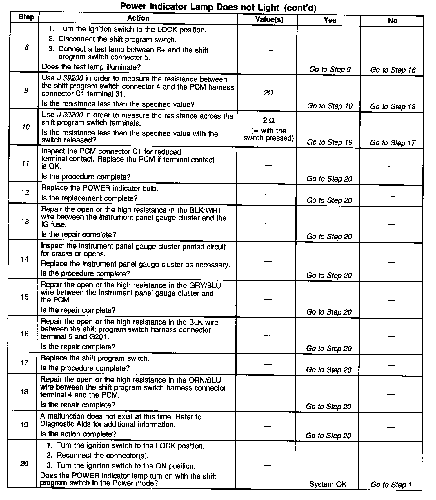 8. This step tests for a reduced ground (G201) to the Mode Select Switch.