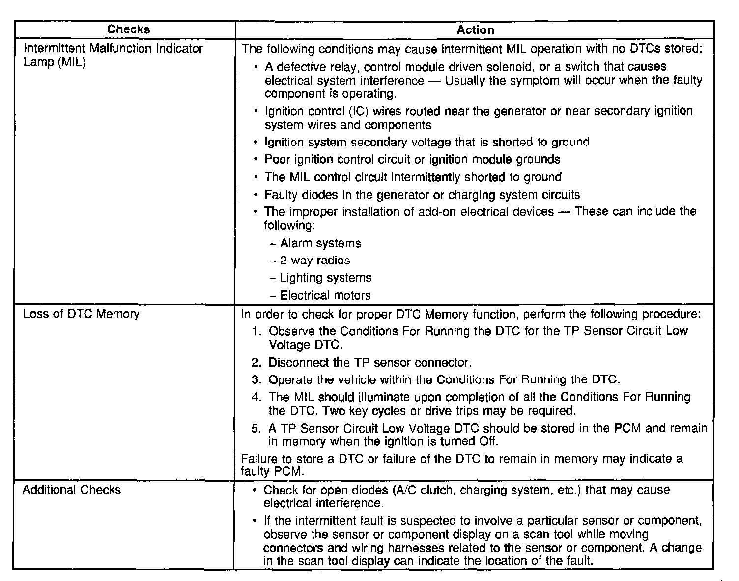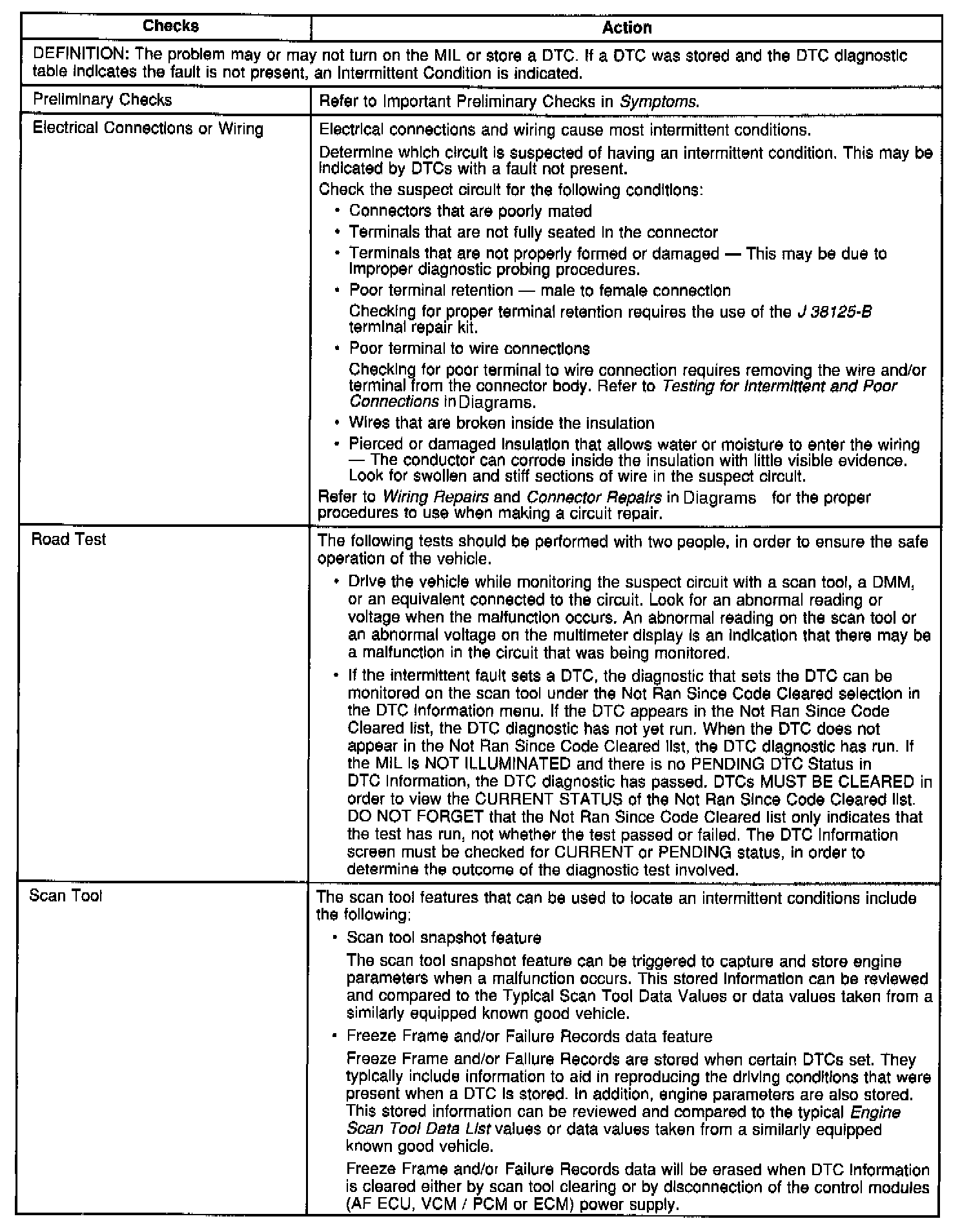 ^ Most intermittent malfunctions are caused by faulty electrical connections or faulty wiring. Perform a careful check of the suspect circuits for any of the following conditions: