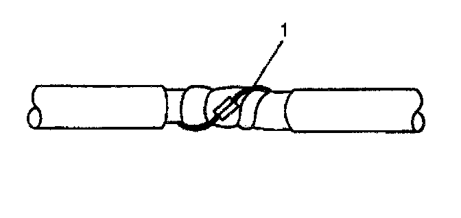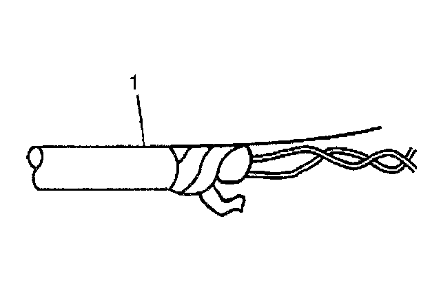 1. Remove the outer jacket (1). Use care not to cut into the drain wire of the mylar tape.
