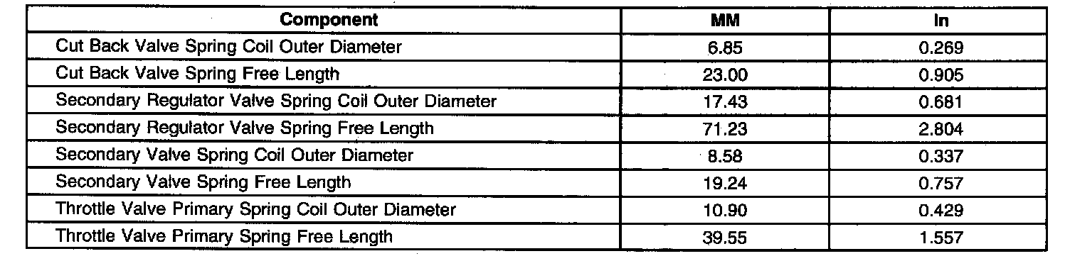 Front Upper Valve Body Spring Specifications