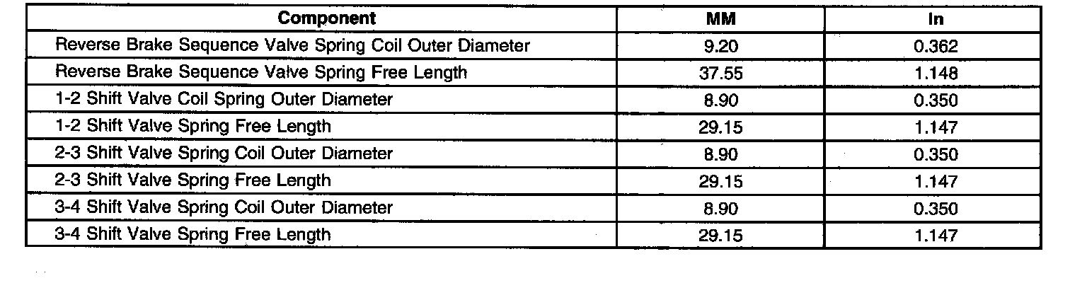 Rear Upper Valve Body Spring Specifications